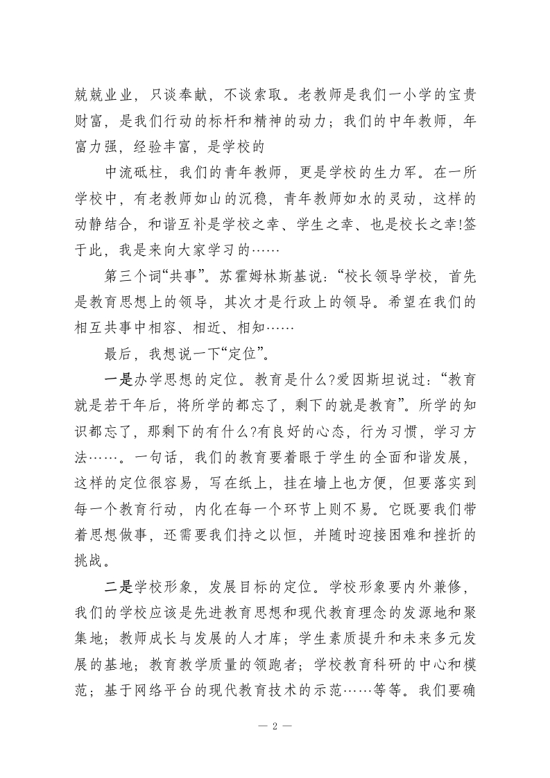 学校校长表态发言稿怎么写精选篇1尊敬的局领导、全体教职员工:大家好」深得局领导信任与爱戴,来到小学工作,在此我深表感谢,谢谢局领导!今晚,第一次在这样的场合和大家见面,我很高兴。能和在座的熟悉的和将要熟悉的老师成为同事,是我一生修的缘分。第一次和大家交流、交心,我只说四个词:服务、学习、共事、定位。第一个词:“服务”:我是来服务大家的。各位教师,每天在教学一线辛苦劳作,每天为了自己的专业化发展而不懈努力,我一定当好在座各位的“勤务兵”。第二格词“学习”,为什么这么说呢?我觉得有以下几个方面的原因:1.城内一小学有着悠久的历史,深厚的文化积淀。说她积淀深厚是因为城内一小学的品牌是几代人,包括在座的各位教师呕心沥血、承前启后,用智慧和汗水、激情与奉献铸就的。说她有独到的文化,是因为一小学有着肃然起敬的学校精神,有着积极向上的价值取向和约定俗成的行为规范。“蓬生麻中,不扶自直”,“橘生淮南为橘,生淮北为枳”,这就是文化的作用,而一小学有这样的一种学校文化影响力。2.一小学有着结构合理,敬业爱生,积极进取,业务精湛的教师群体,有着非常可敬、可爱的一批老教师,他们对工作-1