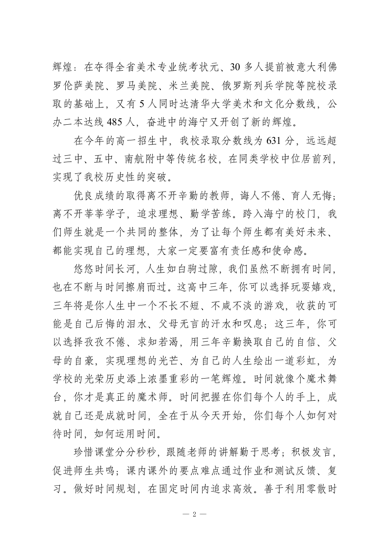 学校校长表态发言稿怎么写精选篇3尊敬的老师们、亲爱的同学们:今天我们在这里迎接刚刚跨入高中校园的新生,又为将奔赴人生新境界的高三学长们吹响冲锋的号角。借着这个简约而隆重的开学典礼,我谨代表海宁中学的全体师生,向新老同学表示热烈的欢迎!海宁中学是一所具有深厚文化积淀和光荣传统的百年名校,它的历史可以上溯到1890年的文正书院。一个多世纪以来,它几经风雨、几度辉煌,为国家培养了一批批德才兼备的人才,其中两院院士名,汪道涵、曾联松等知名校友载入海宁的史册。我们要继承学校百年光辉传统,牢记“大诚、大勤、大勇”之校训。一代代海宁人用诚、用勤、用勇,不断开拓、求索、奋进!“宁静致远、海纳百川”,是心静坦然的大气度,是包容万物的大胸襟,是精深悠远的大智慧,是博大高旷的大境界。它呼唤我们行动起来,全校师生的一切行为都以特色、以美德、以高效为基础,开创美好人生,建设美好未来,报效祖国而奋斗。同学们,回顾海宁中学的历年成绩,每年都有一大批学生考入清华、复旦、同济、南大、东大、中央美院、中国美院等全国一流高校。近五年来,我校连续荣获“南京市高中办学绩效评估”最高奖项一综合奖,并荣获“南京市高中办学绩效评估”推进奖和特殊贡献奖。连续八年蝉联全省美术统考状元。2000年以来,已有30多名学生考取清华大学。20年高考我校再创1