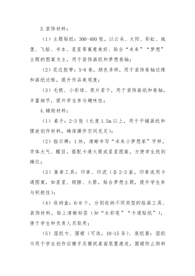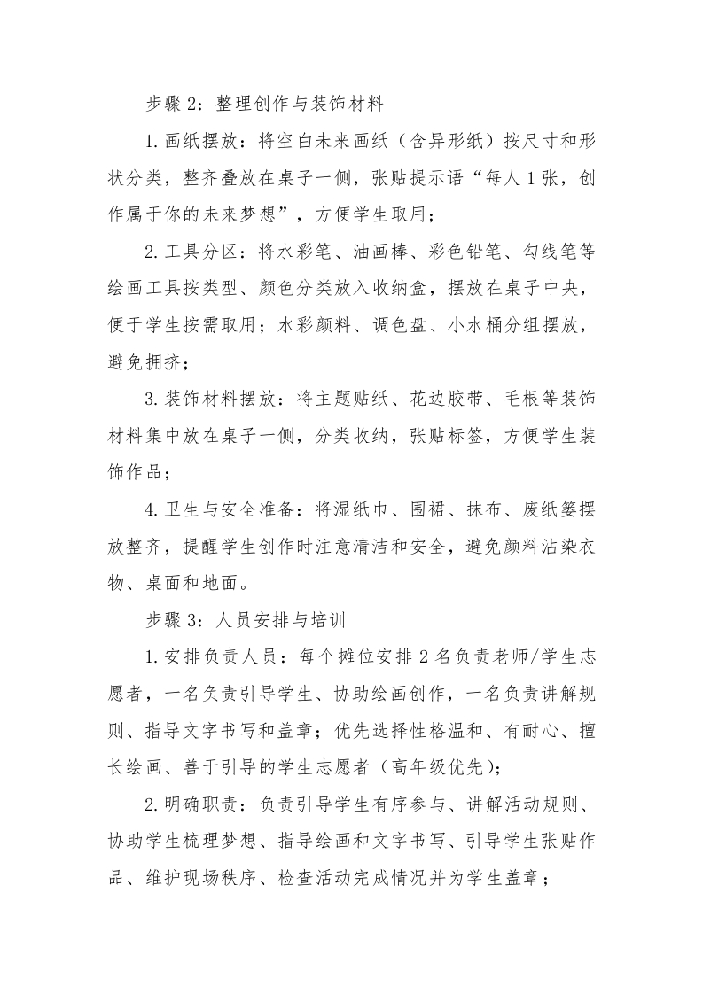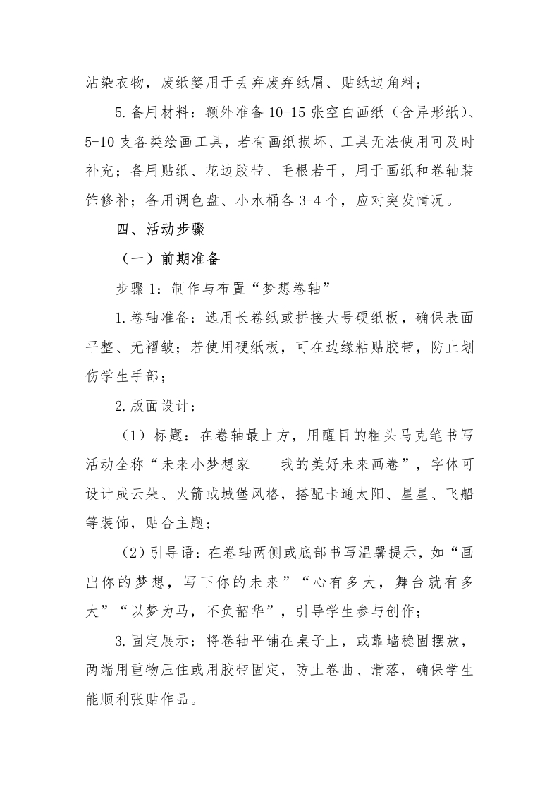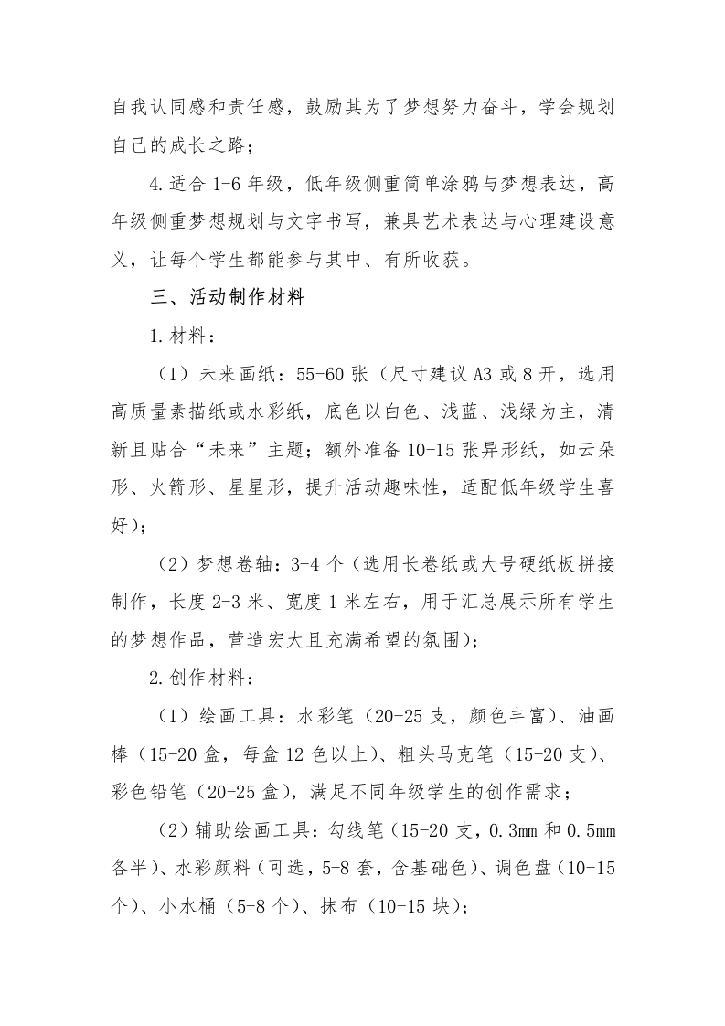 2026年学生心理游园活动未来小梦想家活动名称活动目的备注借助绘画与书写的形式,帮心理游园活动一未来小梦想家助学生畅想未来,表达对未探索内心·点亮未来未来小梦想家来生活的期待与向往,激发内在驱动力,树立积极向上的人生态度。心理游园活动一一未来小梦想家一、活动名称未来小梦想家二、活动目的1.播撒梦想种子:借助绘画与书写的形式,帮助学生畅想未来,表达对未来生活的期待与向往,激发内在驱动力,树立积极向上的人生态度;2.提升未来视野:引导学生跳出当下的琐碎与烦恼,从更长远的角度看待自己的成长,培养前瞻性思维和远大志向,增强成长的动力:3.强化自我期许:通过可视化的未来愿景,增强学生的