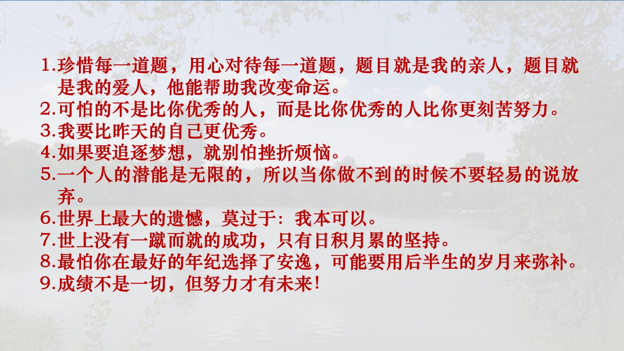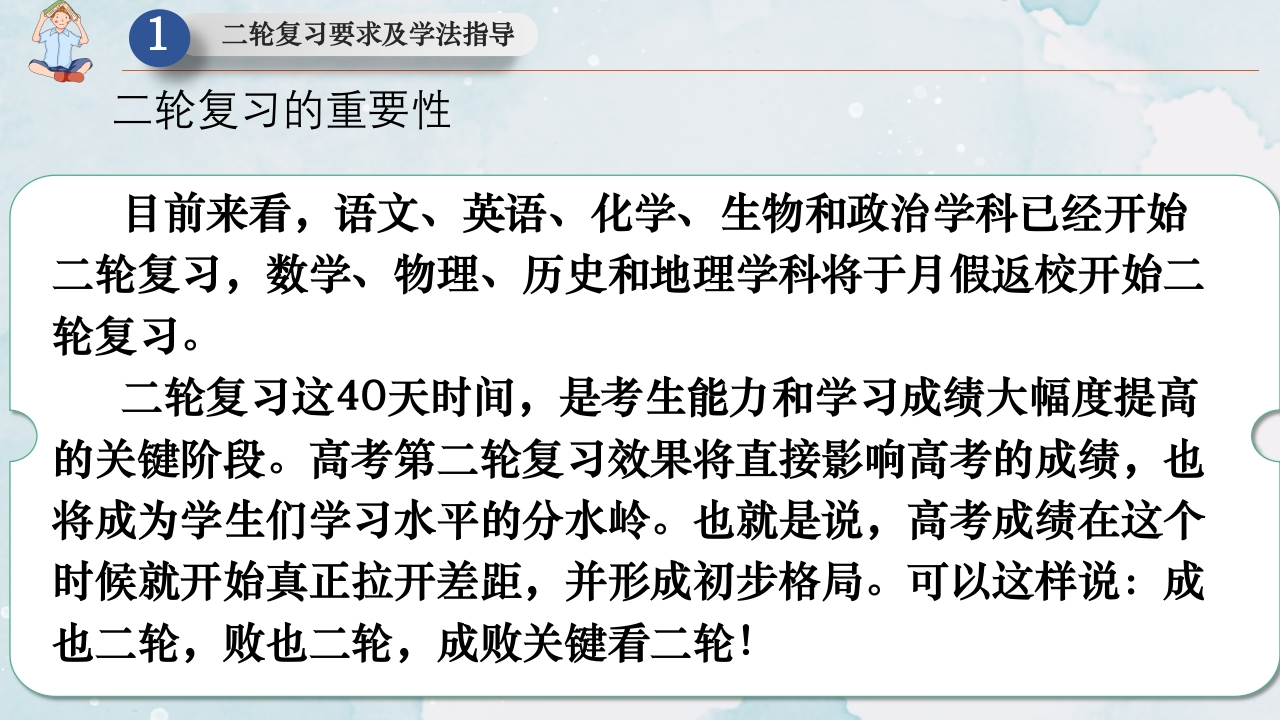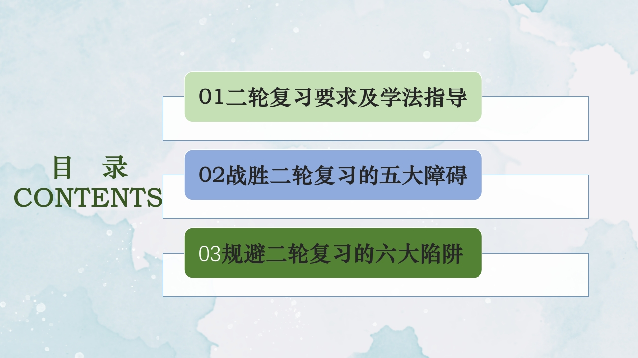 【高三】【学法指导】【高考备考】高考二轮复习学法指导班会【乘风破浪,再接再厉】tangqi884天前发布关注私信10.43MB41页02615 第1页 / 共41页 第2页 / 共41页 第3页 / 共41页 第4页 / 共41页 第5页 / 共41页 试读已结束,还剩36页,您可下载完整版后进行离线阅读 【高三】【学法指导】【高考备考】高考二轮复习学法指导班会【乘风破浪,再接再厉】此内容为付费资源,请付费后查看¥9.9¥19.9VIP会员免费立即购买您当前未登录!建议登陆后购买,可保存购买订单付费资源© 版权声明本站是一个信息分享及获取的平台,不确保部分用户上传资料的来源及知识产权归属,资料由老师投稿,公开渠道整理,网友上传,如果侵犯到您的权益,请联系客服删除THE ENDPPT课件 文本预览 奋斗不延期加乘风破浪油少年再接再厉尽情挥酒青春不负寒读十年高三二轮复习学法指导主题班会 查看更多 收起部分 喜欢就支持一下吧点赞15 分享QQ空间微博QQ好友海报分享复制链接收藏