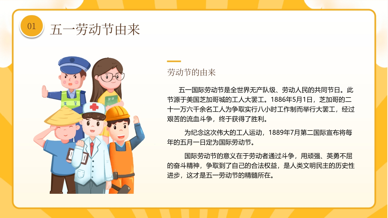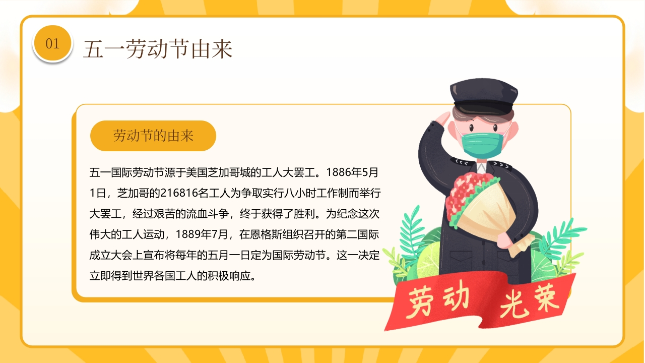 【通用】【五一劳动节】主题班会:劳动最光荣tangqi8813小时前发布关注私信5.52MB26页04314 第1页 / 共26页 第2页 / 共26页 第3页 / 共26页 第4页 / 共26页 第5页 / 共26页 试读已结束,还剩21页,您可下载完整版后进行离线阅读 【通用】【五一劳动节】主题班会:劳动最光荣此内容为付费资源,请付费后查看¥9.9¥19.9VIP会员免费立即购买您当前未登录!建议登陆后购买,可保存购买订单付费资源© 版权声明本站是一个信息分享及获取的平台,不确保部分用户上传资料的来源及知识产权归属,资料由老师投稿,公开渠道整理,网友上传,如果侵犯到您的权益,请联系客服删除THE ENDPPT课件 文本预览 ●●●●●●●●2026年五月一日劳动最光菜--五一劳动节安全教育-2国际劳动节又称“五一国际劳动节”国际示威游行日”(International Labor Day?或者May Day),是世界上大多数国家的劳动节.…●●●●光 查看更多 收起部分 喜欢就支持一下吧点赞14 分享QQ空间微博QQ好友海报分享复制链接收藏