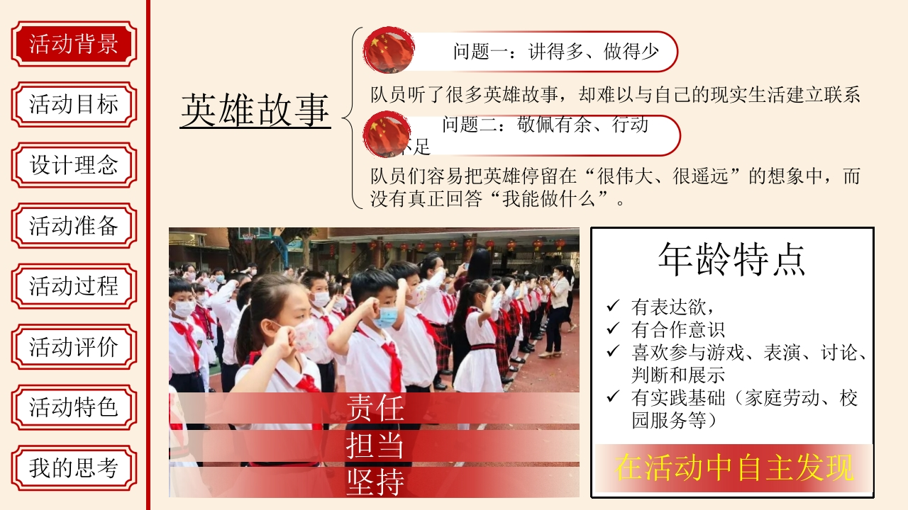少先队活动课说课稿——今天的我,怎样接过英雄的火炬tangqi8818小时前发布关注私信52.87MB29页03112 第1页 / 共29页 第2页 / 共29页 第3页 / 共29页 第4页 / 共29页 第5页 / 共29页 试读已结束,还剩24页,您可下载完整版后进行离线阅读 少先队活动课说课稿——今天的我,怎样接过英雄的火炬此内容为付费资源,请付费后查看¥9.9¥19.9VIP会员免费立即购买您当前未登录!建议登陆后购买,可保存购买订单付费资源© 版权声明本站是一个信息分享及获取的平台,不确保部分用户上传资料的来源及知识产权归属,资料由老师投稿,公开渠道整理,网友上传,如果侵犯到您的权益,请联系客服删除THE ENDPPT课件 文本预览 今天的我怎样接过英雄的火炬少先队活动课说课★★★★★弘扬红色精神,赓续红色血脉主讲人:XX时间:2026年4月 查看更多 收起部分 喜欢就支持一下吧点赞12 分享QQ空间微博QQ好友海报分享复制链接收藏