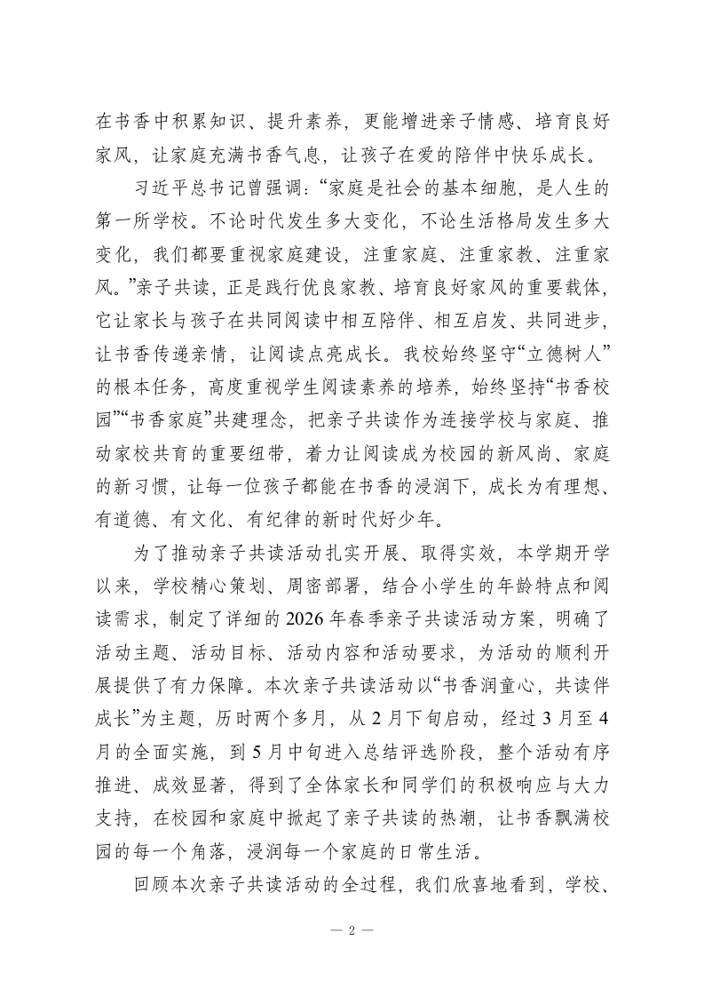 XX市第九小学2026年春季亲子共读活动总结表彰校长致辞此内容为付费资源,请付费后查看