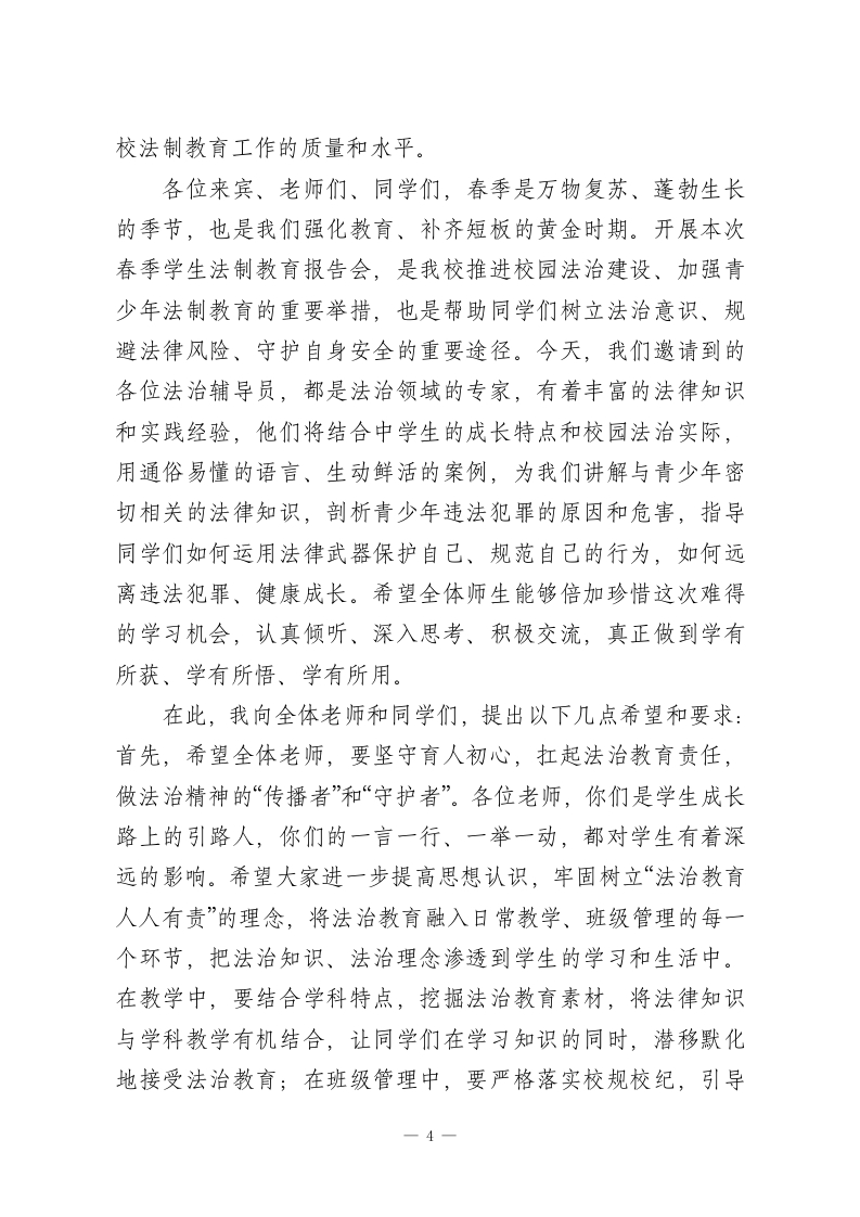 XX中学2026年春季学生法制教育报告会校长开场致辞此内容为付费资源,请付费后查看