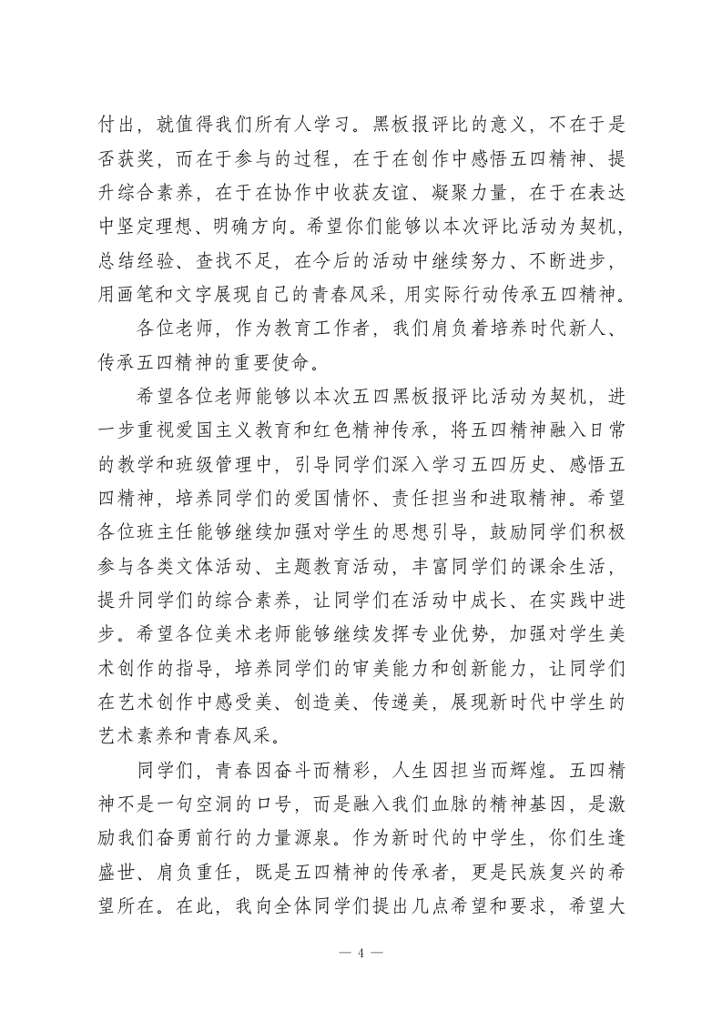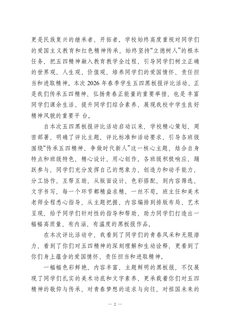 XX中学2026年春季学生五四黑板报评比颁奖仪式校长讲话此内容为付费资源,请付费后查看
